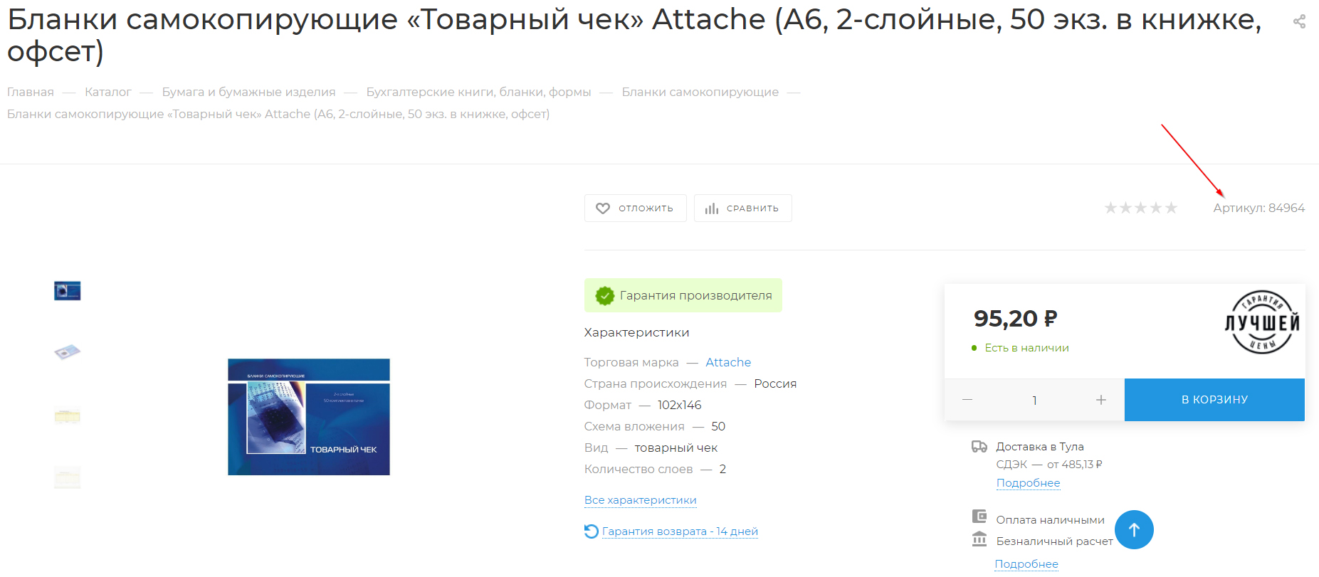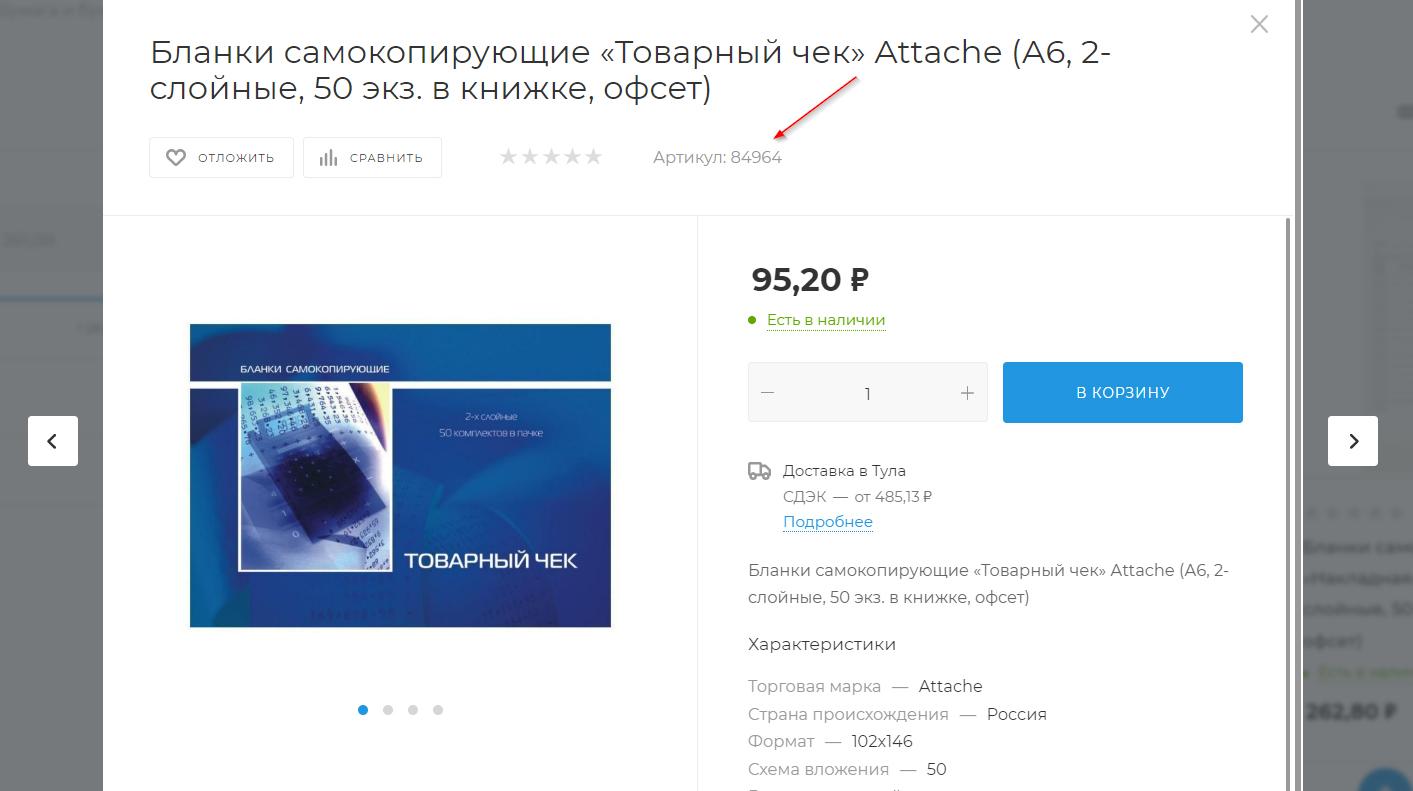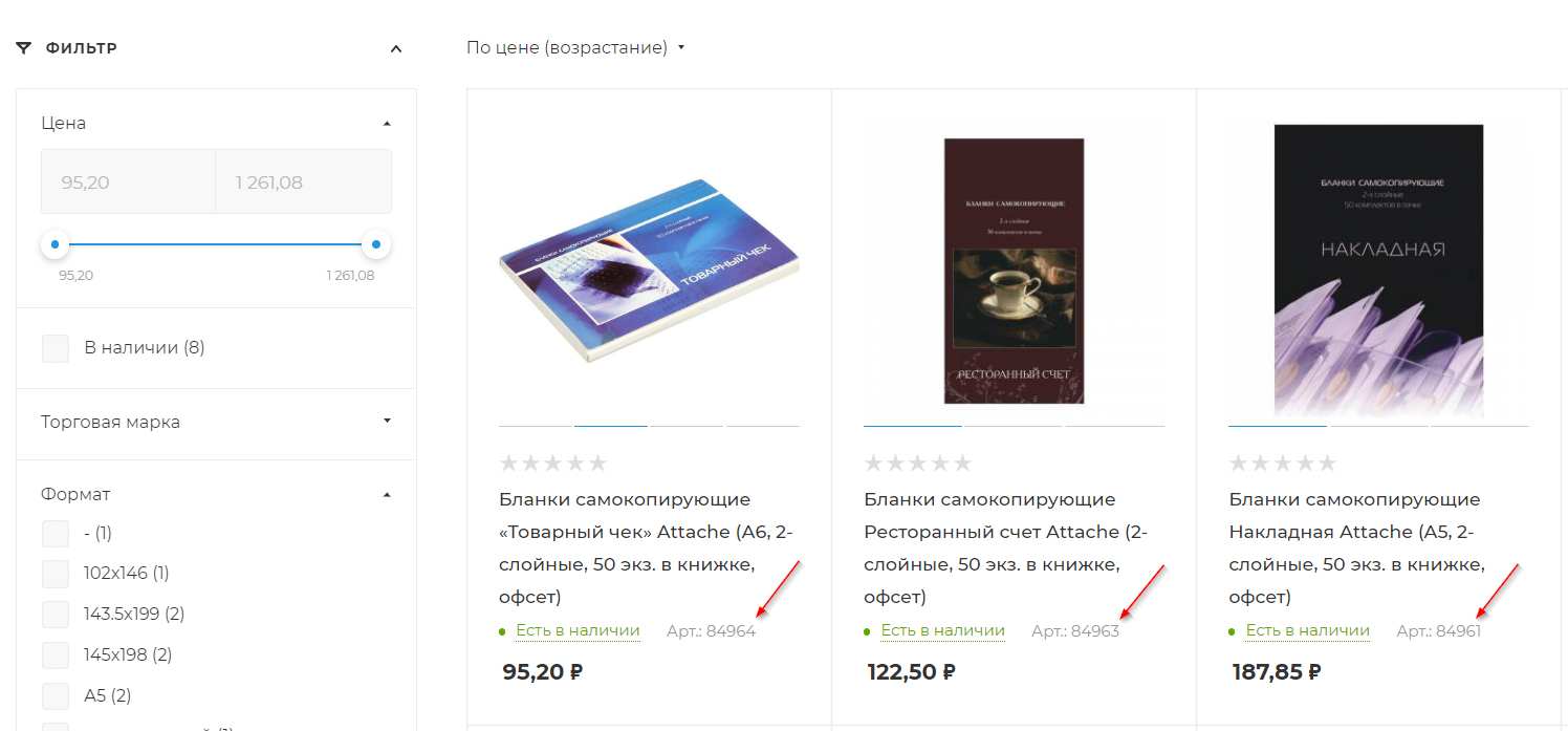 Артикул отображается в каждом товаре, ему можно найти в трех местах: