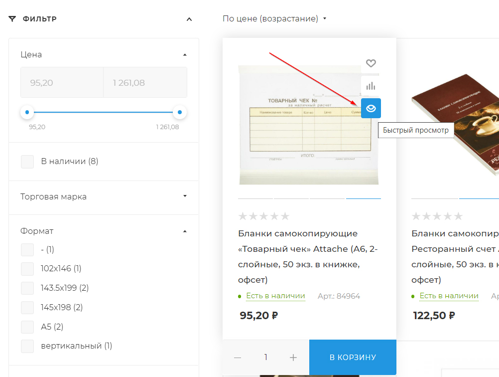 В быстром просмотре товара. Для это откройте быстрый просмотр тут: