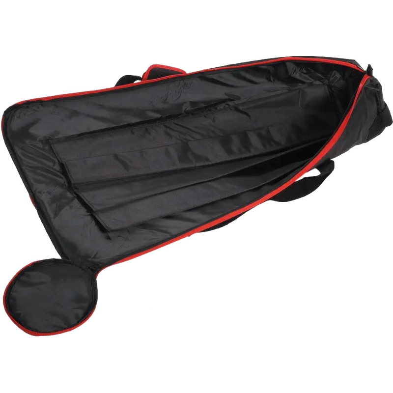Сумка рассчитана на три стойки, длина каждой из которых в сложенном виде не превышает 1,2 метра. Учитывая условия эксплуатации, когда сумка с оборудованием может подвергаться резким движениям и неаккуратному обращению, рекомендуется не превышать максимальную нагрузку в 10 кг.Сумка изготовлена из прочного и эластичного синтетического материала — полиэстера Оксфорд. Этот материал отличается высокой износостойкостью и устойчивостью к атмосферным воздействиям благодаря специальной водоотталкивающей пропитке. Внутри сумки расположены три отсека с тканевыми перегородками, которые защищают оборудование от повреждений. Сумка лёгкая и компактная, что делает её удобной для переноски.