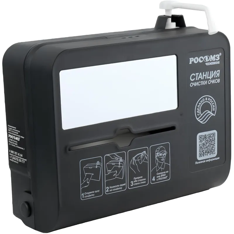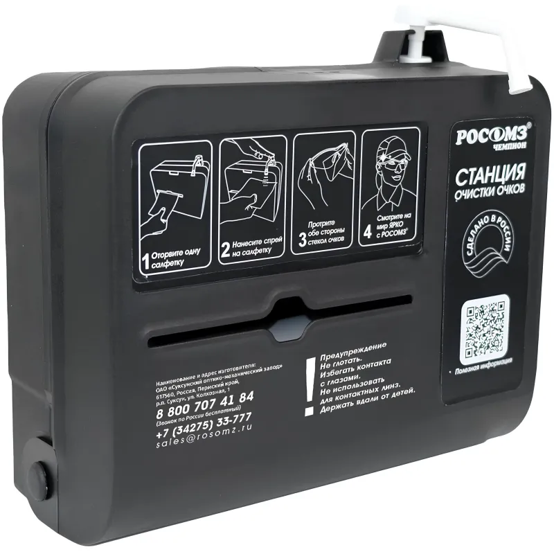 Станция очистки очков РОСОМЗ (01718). Станция РОСОМЗ для очистки очков очков любого типа от пыли, отпечатков пальцев, жирных пятен и других загрязнений. Продлевает срок службы использований стекол очков защитных и светофильтров, не раздражает кожу, не требует смывания. Для вашего удобства, на корпусе станции есть зеркало.