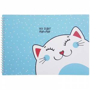 Альбом для рисования Be Smart из коллекции Mur-mur на боковой спирали А4 формата (299x210 мм) с милым котиком на обложке.