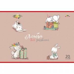 Альбом для рисования Апплика «Веселые зайчата» 20 листов. Формат А4, размер листа 290x205 мм, плотность 100 г/кв.м. Внутренний блок — высококачественная офсетная бумага. Обложка — мелованный картон плотностью 230 г/кв.м, полноцветная печать с защитным ВД-лаком. Крепление — скрепка. Альбом предназначен для рисования карандашами и фломастерами.