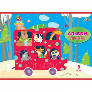 Альбом для рисования Апплика «Путешествие» 8 листов. Формат А4, размер листа 290x205 мм, плотность 100 г/кв.м. Внутренний блок — высококачественная офсетная бумага. Обложка — мелованный картон плотностью 230 г/кв.м, полноцветная печать с защитным ВД-лаком. Крепление — скрепка. Альбом предназначен для рисования карандашами и фломастерами.