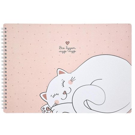 Мурр… и никак иначе! В обновлении коллекции «Mur-mur» от Be Smart наш ленивый котик начал питать особенно теплые чувства к домашним растениям своей любимой хозяйки. Давай следить за продолжением истории Мур-Мура вместе с нашим альбомом для рисования А4 формата (299×210 мм), который прекрасно уместится в рюкзак и будет всегда под рукой для более масштабных рисунков. Крепление на спирали позволит незаметно для альбома вырвать лист с неудачным рисунком и удобно перекидывать листы при использовании.А обложка из мягкого, но прочного картона плотностью 400 г/м2 с микротекстурированием имеет приятную ламинацию, которая делает изделие прочнее и долговечнее. А скругленные уголки позволят мягкой обложке сохранить первозданный вид. Внутренний блок с прямыми уголками на 40 нелинованных листов из высококачественной белой бумаги плотностью 120 г/м2 подойдет для разных сухих техник рисования.