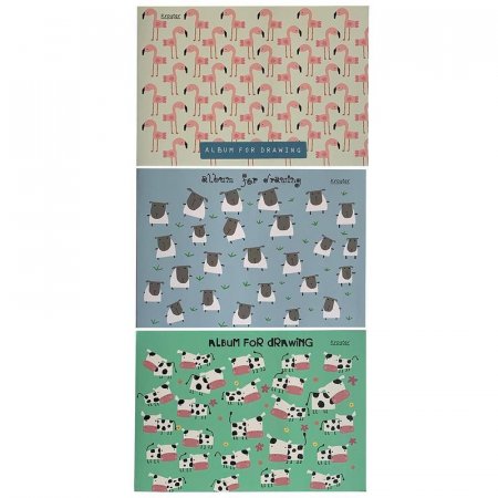Альбом для рисования А4 (207x297 мм) 30 листов. Бумага рисовальная 100 г/кв.м, 100% целлюлоза, предназначен для сухих техник. Подходит для рисования карандашами, фломастерами, руками, линерами. Крепление — склейка. Мягкая обложка (230 г/кв.м) и подложка. Серия «Аnimals» 3 дизайна в упаковке.