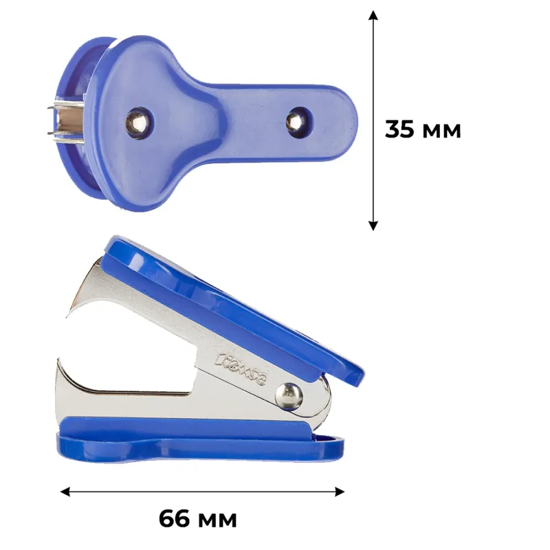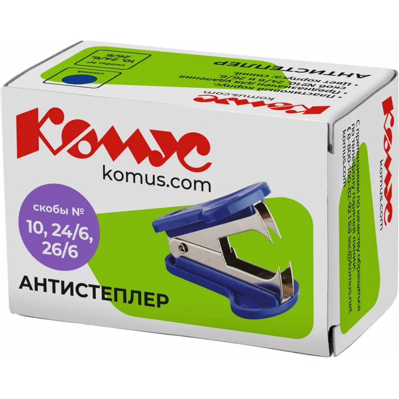 Антистеплер Комус предназначен для удаления скоб № 10, № 24/4 и № 24/6.Рабочий механизм антистеплера выполнен из металла, корпус — из высококачественного синего пластика, следы износа которого не будут заметны даже после многократного использования. Позволяет разжать закрепленные скобы более качественно, не нанося повреждений ни материалу, ни кончикам пальцев. Товар упакован в индивидуальную картонную коробочку.