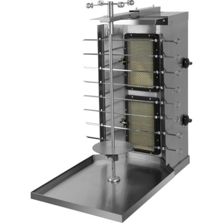 Аппарат для шаурмы Гриль-Мастер Ф2ШМГ (29703) имеет 2 горелки с системой газ-контроль, производительность до 60 кг/мяса, 8 шампуров для шашлыка, поддон для мяса, полностью из нержавеющей стали, настроена на пропан.