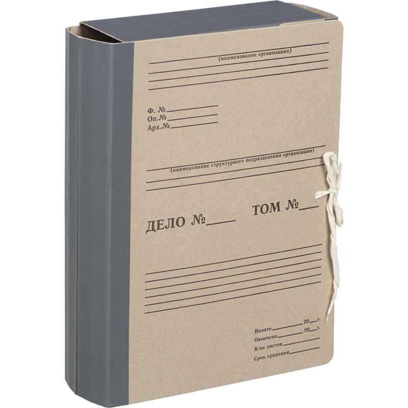 Складная папка архивная изготовлена из переплетного картона, корешок — бумвинил. В закрытом виде фиксируется с помощью четырех хлопчатобумажных завязок. Ширина корешка — 80 мм. Папка вмещает 800 листов стандартной плотности. Позволяет надежно хранить документы как в вертикальном, так и в горизонтальном положении. Размер изделия — 230x320x80 мм.