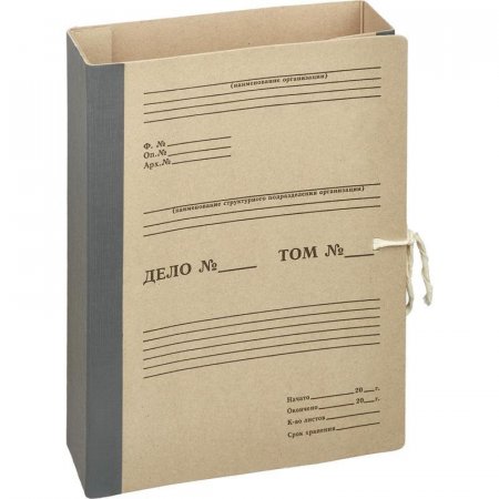 Папка для переплета позволяет осуществлять переплет документов с минимальными затратами времени. Имеет гребешок из переплетного картона с отверстиями под стандартный дырокол (расстояние между отверстиями 80 мм) и металлопластиковый сшиватель. В закрытом виде фиксируется с помощью двух хлопчатобумажных завязок. Размер папки позволяет подшивать документы в файлах. Изготовлена из переплетного картона, корешок — бумвинил. Размеры: 240x120x330 мм.