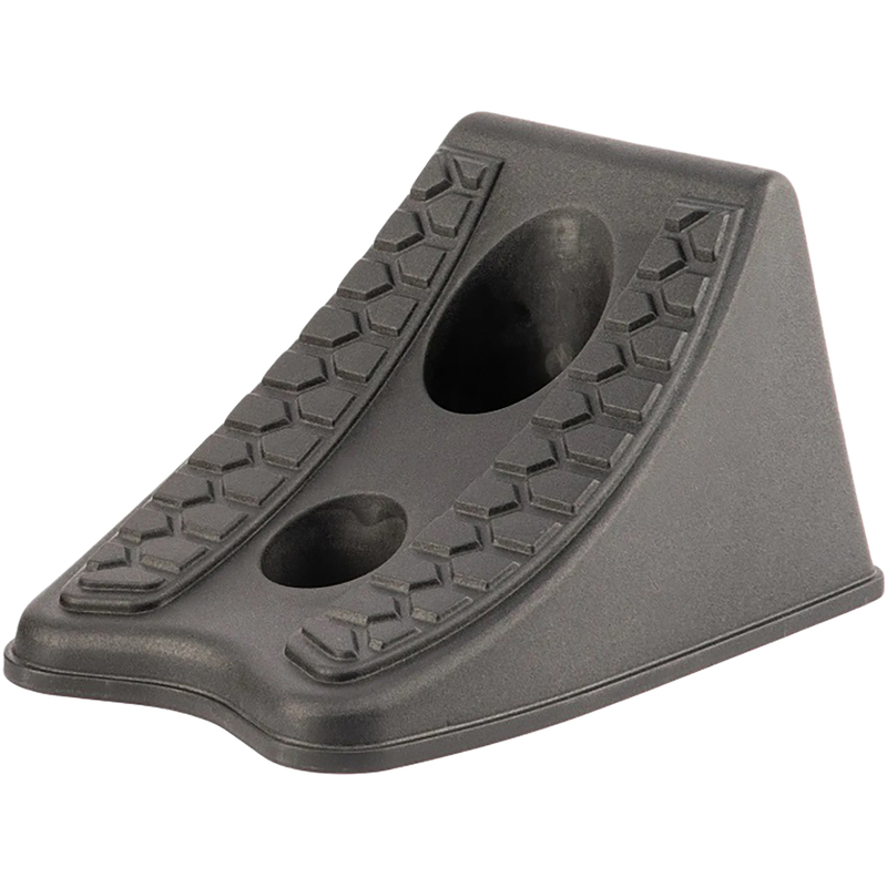 Противооткатные башмаки из прочного пластика являются упором для колес легковых автомобилей, предотвращающим самопроизвольный откат при поднятии домкратом. Помимо этого, башмаки, закрепленные на полу парковочного места через специальные отверстия в корпусе, могут использоваться как ограничители заезда. Размеры 207x146x115 мм. В комплекте 2 штуки.