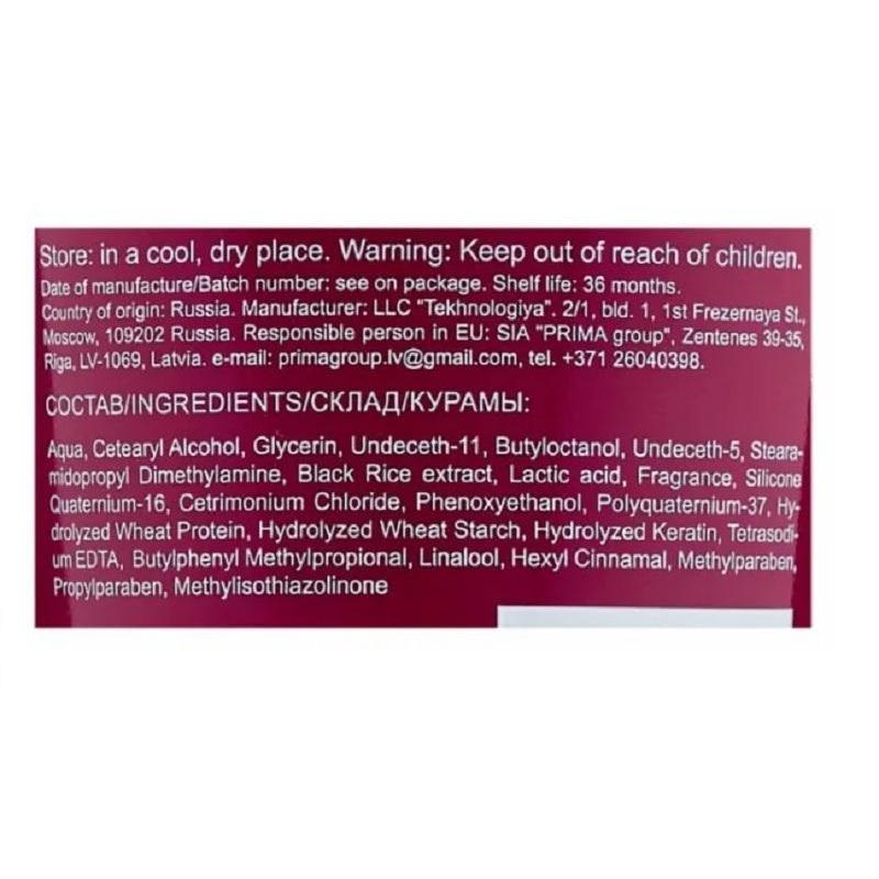 Является прекрасным кондиционирующим средством. Облегчает укладку, обеспечивает защиту от нагревания феном и щипцами. Препятствует спутыванию волос. Защищает от негативного воздействия окружающей среды. Обладает антиоксидантными свойствами.Состав: Aqua, Cetearyl Alcohol, Glycerin, Undeceth-11, Butyloctanol, Undeceth-5, Stearamidopropyl Dimethylamine, Black Rice extract, Lactic acid, Fragrance, Silicone Quaternium-16, Cetrimonium Chloride, Phenoxyethanol, Polyquaternium-37, Hydrolyzed Wheat Protein, Hydrolyzed Wheat Starch, Hydrolyzed Keratin, Tetrasodium EDTA, Butylphenyl Methylpropional, Linalool, Hexyl Cinnamal, Methylparaben, Propylparaben, Methylisothiazolinone.Способ применения: распределить на ладонях небольшое количество крема и попрядно нанести на вымытые, хорошо отжатые волосы. Не смывать.
