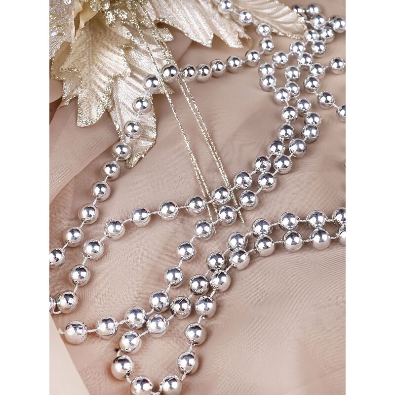 Бусы на елку — незаменимый декор, который помогает создавать невероятно уютную атмосферу Нового Года! Они эффектно выделяются на фоне хвои, придавая оформлению праздничный вид. Кроме того, бусами можно украсить предметы интерьера. Материал: пластик. Размер бусин: 1 см. Длина нити: 1000 см. Цвет: серебристый
