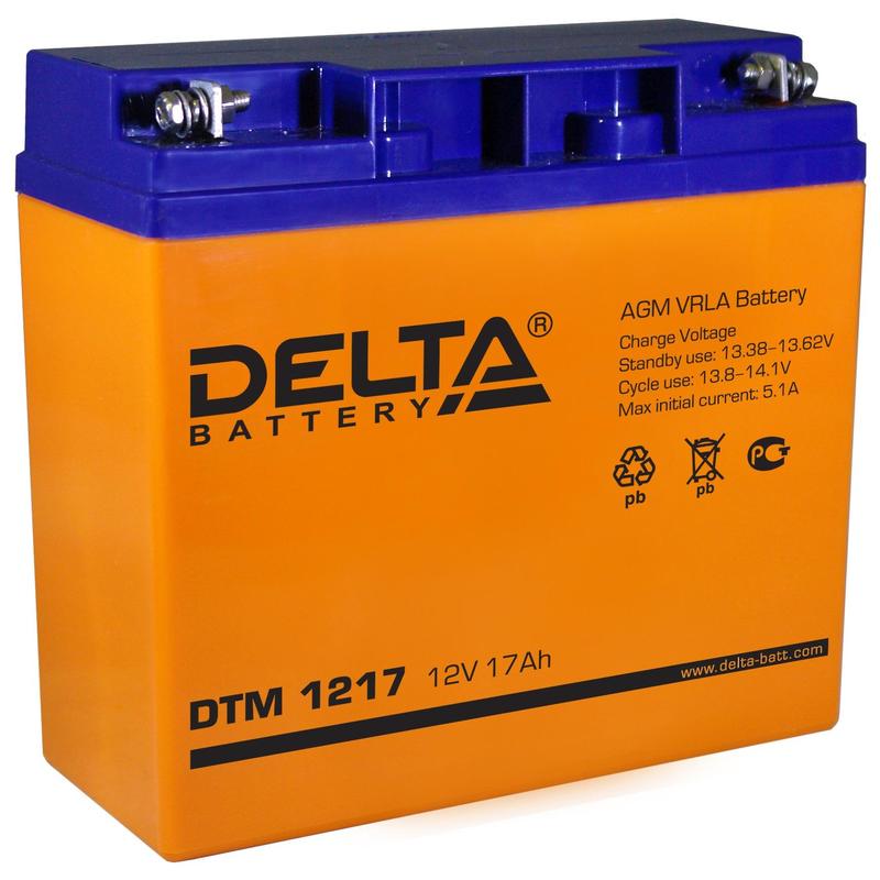Аккумуляторная батарея Delta DTM 1217. Напряжение 12 В, емкость 17 Ач. Обладает широким спектром применения. Рекомендуется для использования в буферном и в циклическом режимах. Срок службы 6 лет.
