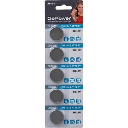 Батарейка CR2025 GoPower (5 штук в упаковке) Внешний вид и/или характеристики товара могут быть изменены производителем в соответствии с производственным процессом.