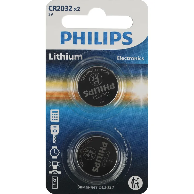 Батарейка CR2032 Philips (2 штуки в упаковке) Внешний вид и/или характеристики товара могут быть изменены производителем в соответствии с производственным процессом.