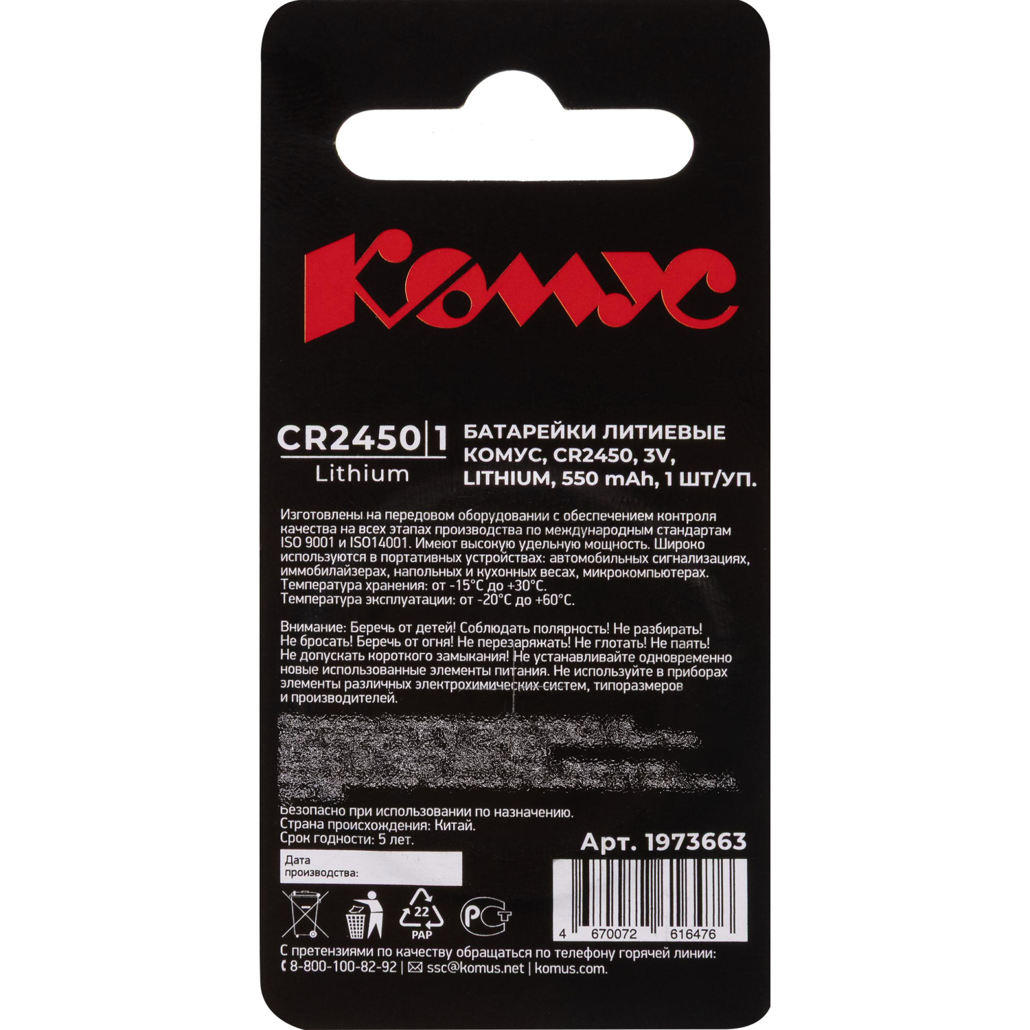 Батарейка CR2450 Комус