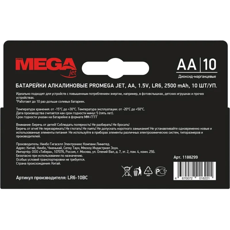 Комплект батареек стандарта AA, имеющих широчайший спектр применения. Напряжение — 1,5 В. Лучший способ утилизировать отработавшие батарейки — приносить их в контейнеры для дальнейшей переработки. Такие контейнеры сейчас устанавливаются во многих супермаркетах, торговых центрах и магазинах бытовой техники. Утилизация батареек должна происходить согласно санитарным нормам, то есть в специализированный контейнер.