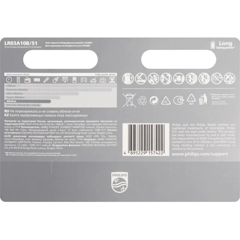 Батарейка AAA мизинчиковая Philips Entry (10 штук в упаковке)
