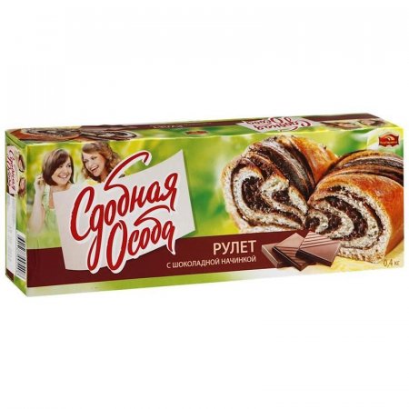 Рулет Черемушки с шоколадной начинкой 400 гр.Пищевая ценность в 100г продукта: белки 7,1г углеводы 55,8г, жиры 15,2г.Энергетическая ценность в 100г: 388 ккал.Срок годности: 60 суток.Условия хранения: при температуре не выше 25 градусов Цельсия и относительной влажности не более 85%.Производитель: ОАО КБК "Черемушки"