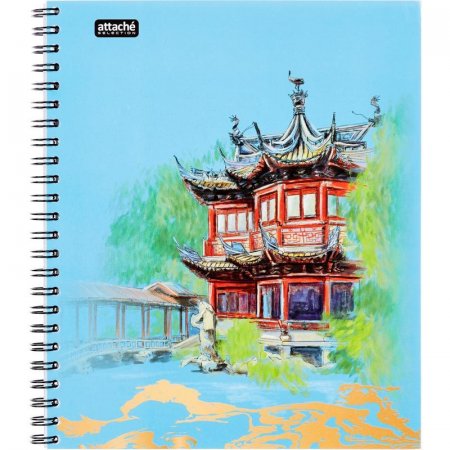 Бизнес-тетрадь Attache Selection Travel China формата А5 на спирали. Предназначена для записей. Используется в старших классах, студентами и в офисе. Обложка изготовлена из мелованного картона с цветной печатью и с глянцевым ламинированием, плотность — 230 г/кв.м. Внутренний блок — нетонированная бумага, офсетная 60 г/кв.м, белизна — 100%. Тетрадь толщиной 96 листов (192 страницы) в клетку. Размер тетради — 170x203 мм.