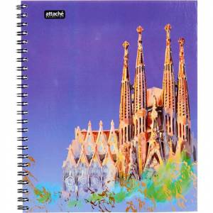 Бизнес-тетрадь Attache Selection Travel Spain формата А5 на спирали. Предназначена для записей. Используется в старших классах, студентами и в офисе. Обложка изготовлена из мелованного картона с цветной печатью и с глянцевым ламинированием, плотность — 230 г/кв.м. Внутренний блок — нетонированная бумага, офсетная 60 г/кв.м, белизна — 100%. Тетрадь толщиной 96 листов (192 страницы) в клетку. Размер тетради — 170x203 мм.
