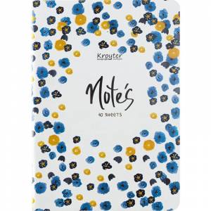 Бизнес-тетрадь Kroyter Flowers в эмоциональном, ярком дизайне, формата А5. Мягкая обложка из картона с принтом, тонированный блок из офсетной бумаги бежевого (кремового) цвета плотностью 70 г/кв.м. Белизна бумаги 76%. Обрез кремовый. В блоке 40 листов в клетку на сшивке. Углы тетради закругленные. Изделие без ляссе, разделителей и дополнительных элементов. Размер тетради — 145x206 мм.