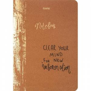 Бизнес-тетрадь Kroyter Офис в эмоциональном, ярком дизайне, формата А5. Мягкая обложка из крафтового картона коричневого цвета с тиснением фольгой, блок из офсетной бумаги бежевого цвета (цвета слоновой кости) плотностью 80 г/кв.м. Белизна бумаги 82%. Обрез бежевый. В блоке 40 листов в линию на скрепке. Углы тетради закругленные. Изделие без ляссе и разделителей. Есть титульный лист. Размер тетради — 145x206 мм.