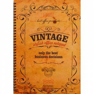 Бизнес-тетрадь Kroyter «Винтаж» формата А4 (295x207 мм), 100 листов. Внешний вид выделяет ее среди других тетрадей. Предназначена для записей, используется в старших классах, студентами и в офисе. Обложка интегральная, высококачественный импортный картон. Тиснение фольгой. Стильный, современный дизайн. Матовая ламинация придает обложке приятные тактильные ощущения и позволяет изделию дольше сохранить опрятный вид. Внутренний блок изготовлен из бумаги повышенного качества, плотностью 65 г/кв.м, клетка среднего размера (5 мм), что удобно при использовании — записи не сливаются и их удобнее читать. Размер внутреннего блока 205x294 мм. Белые поля предназначены для заметок и любителей порисовать.