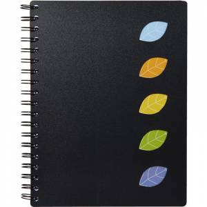 Бизнес-тетрадь Attache Office Creative в строгом офисном стиле формата А4-. Размер изделия — 195x245 мм. Содержит 120 листов (240 страниц) из экстра белой офсетной бумаги оптимальной плотности 70 г/кв.м. в клетку. Размер блока — 174x244 мм. Твердая обложка c вырубкой изготовлена из полипропилена черного цвета, защищает бумагу от деформации и загрязнения. Внутренний блок скреплён по левому краю металлической спиралью. Тетрадь имеет 5 цветных съемных пластиковых разделителей, которые разбивают блок на тематические разделы, что очень удобно для ведения записей по нескольким предметам. Разделители цепляются на замках к спирали, что позволяет перемещать их в любое нужное место блока.