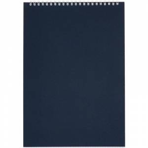 Блокнот Альт классического дизайна. Однотонная обложка синего цвета выполнена из картона. Плотность обложки — 300 г/кв.м. Внутренний блок, скрепленный по горизонтальному краю металлической спиралью, содержит 60 листов (120 страниц) с отрывной перфорацией. Плотная белая бумага с полями разлинована в клетку. Размер блока — 198x285 мм. Размер изделия: 200x290 мм. Блокнот имеет формат А4. Минимальный тираж под нанесение логотипа от 30 штук.