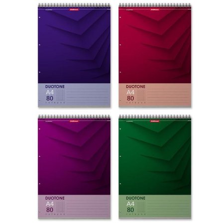 Блокнот формата А4 (210x297 мм). Обложка из высококачественного мелованного картона плотностью 190 г/м2. Жесткая подложка 340 г/м2. В блоке 80 листов в клетку. Бумага офсетная плотностью 70 г/м2. Перфорация для подшивки. Микроперфорация для отрыва. Цвет линовки — синий. Тип скрепления — спираль.