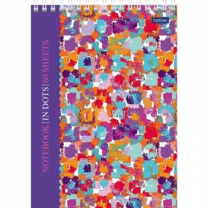 Блокнот «Мозаика» А5 формата на спирали. Содержит 60 листов (120 страниц) белой, офсетной бумаги плотностью 70 г/кв.м в точку. Обложка выполнена из мелованного картона с УФ-лаком, жесткая подложка.