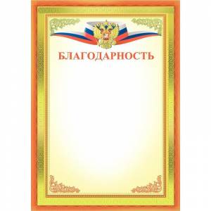 Благодарность отпечатана на импортном мелованном картоне плотностью 190 г/ кв. м. Без тиснения фольгой. Размер бланка 210x297 мм позволяет напечатать на нем текст с помощью стандартного принтера.