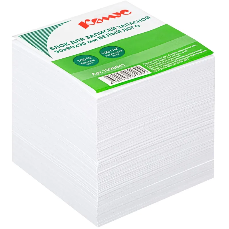 Блок для записей Комус предназначен для работы в офисе или дома. Будет полезен в использовании для рабочих процессов и повседневных задач, а также при проведении совещаний, обучений, мозговых штурмов. Идеально подходит для работников офиса.Блок высотой 9 см сложен из квадратных листов размером 9×9 см . Листы не склеены между собой. Листы изготовлены из высококачественной белой офсетной бумаги плотностью 100 г/м2 и белизной 100%. На листах в правом верхнем углу нанесен логотип Комус. Повышенная плотность и белизны листов добавляет удобства в использовании. Блок для записей подходит для письма любыми типами ручек и карандашей. Благодаря высокой плотности листы не продавливаются при нажатии. Поставляется в термоусадочной пленке, защищающей блок при транспортировке. Для повышения удобства рекомендуется использование в пластиковых подставках и настольных органайзерах.Законодательные и технические документы: