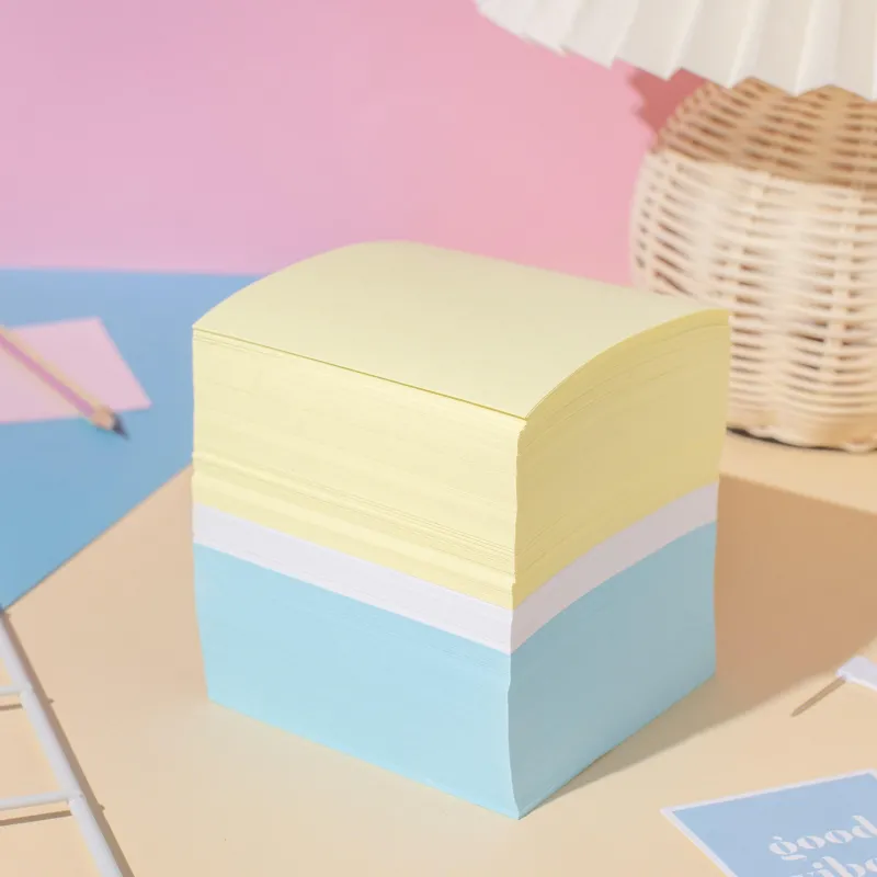 Блок высотой 9 см сложен из квадратных листов размером 9×9 см. Листы не склеены между собой. Листы изготовлены из высококачественной офсетной бумаги плотность белой бумаги 80 г/м2, плотность цветной бумаги 100 г/кв.м. В блоке представлены листы трех цветов. Блок для записей подходит для письма любыми типами ручек и карандашей. Благодаря высокой плотности листы не продавливаются при нажатии. Поставляется в термоусадочной пленке, защищающей блок при транспортировке. Для повышения удобства рекомендуется использование в пластиковых подставках и настольных органайзерах. Товар поставляется в нескольких вариантах цвета (без возможности выбора).