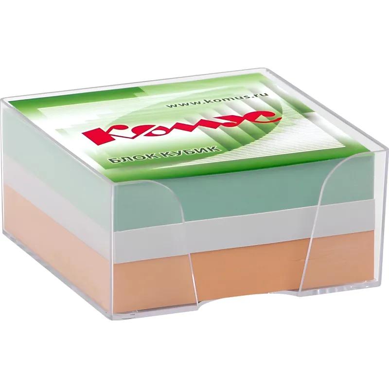 Блок для записей «Комус» размером 90×90×50 мм выполнен из высококачественной цветной офсетной бумаги плотностью 80 г/кв.м. Прозрачный пластиковый бокс, в который вложен блок, обеспечивает удобство использования и порядок на рабочем столе. Поставляется упакованным в термоусадочную пленку. Цвета — в ассортименте.