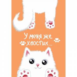 Оригинальный блокнот в форме книжки представлен в классическом удобном формате А6 (110x115мм). На бумажной обложке фрагманты изображения белого котика — мордочка и хвостик. Нанесена надпись «У меня есть хвостик...» Обложка дополнительно покрыта пленкой ПВХ, внутри которой расположен блестящий жидкий микс из блесток разного размера. Стоит взять блокнот в руки и происходит необъяснимое, декоративные элементы начинают расплываться по поверхности, эффектно мерцая и переливаясь при этом. Плавное передвижение сверкающего наполнения не только привлекает, но и успокаивает, обладает антистрессовой функцией. Делайте записи, мните, крутите переживать не стоит, содержимое не вытечет, даже при частом и активном использовании блокнота. Внутренний блок с разлиновкой в клетку содержит 56 листов белой офсетной бумаги. Размер: 11x6 см.