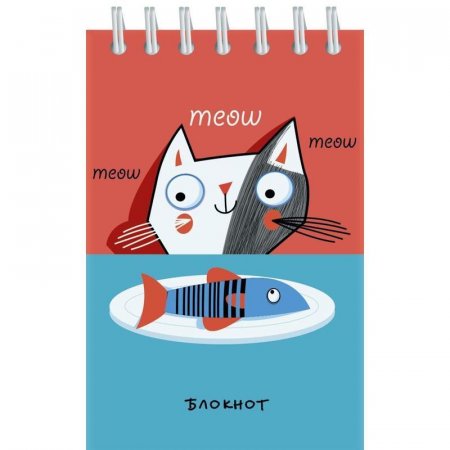 Блокнот на спирали 40 листов, клетка. Формат А7 (70x100 мм). Внутренний блок — высококачественная, белая, офсетная бумага, плотность 60 г/кв.м. Обложка — мелованный картон, полноцветная печать, с защитным ВД лаком. Крепление блока и обложки металлической евроспиралью сверху.