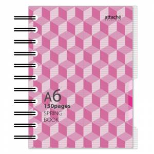 Бизнес-тетрадь «Spring Book» формата А6. Цвет обложки: розовый. Блок плотностью 65 г/кв.м состоит из тонированной, светло-зеленой бумаги. Содержит в себе 150 листов (300 страниц). Обложка из жесткого полупрозрачного пластика с волнистым рельефом. Обложка с вырубной формой для удобства перелистывания блока. Данная тетрадь имеет окрашенный торец блока. Наличие двойной толстой спирали увеличенного диаметра. Первый лист из плотного картона с запечаткой, разлиновка блока в клетку с полями.