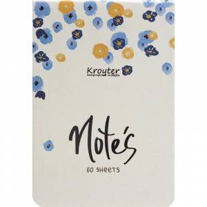 Блокнот Kroyter Flowers в эмоциональном, ярком дизайне, формата 6. Мягкая обложка из картона с принтом, тонированный блок из офсетной бумаги бежевого (кремового) цвета плотностью 70 г/кв. м. Белизна бумаги 76%. Обрез кремовый. В блоке 60 листов в линию на сшивке. Углы блокнота закругленные. Изделие без ляссе, разделителей и дополнительных элементов. Размер блокнота — 100x145 мм.
