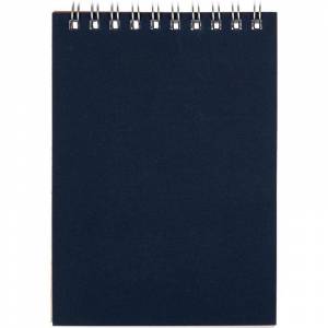 Блокнот Альт классического дизайна. Однотонная обложка синего цвета, выполненная из высококачественного картона, подxодит для нанесения логотипа. Плотность обложки — 300 г/кв.м. Внутренний блок, скрепленный по горизонтальному краю металлической спиралью, содержит 60 листов (120 страниц) с отрывной перфорацией. Одна сторона листа разлинована в клетку. Бумага обладает достаточной плотностью для работы карандашами и ручками любого типа. Блокнот имеет формат А6. Размеры внутреннего блока — 94x130 мм. Размер изделия: 95x135 мм. Минимальный тираж под нанесение логотипа от 30 штук.
