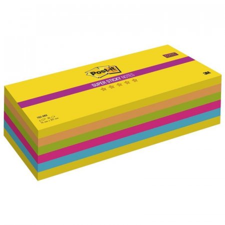Специально созданы для тренеров и фасилитаторов для групповых активностей. 5 ярких неоновых цветов: желтый, синий, розовый, зеленый, оранжевый. Идеальны при проведении совещаний, презентаций, семинаров, тренингов. Уникальная клеевая система Post-it SuperSticky с максимальной клейкостью (57 Н/м) — стикеры отлично держатся на любых поверхностях и предметах, включая пластик, керамику, ткань, кожу. При отклеивании не оставляют следов клея. Допускают многократное переклеивание. Листочки легко отделяются от блока. Можно делать надписи любыми пишущими принадлежностями. Бумага на 100% производится из восстанавливаемых лесов (Сертификаты SFI и PEFC TM).