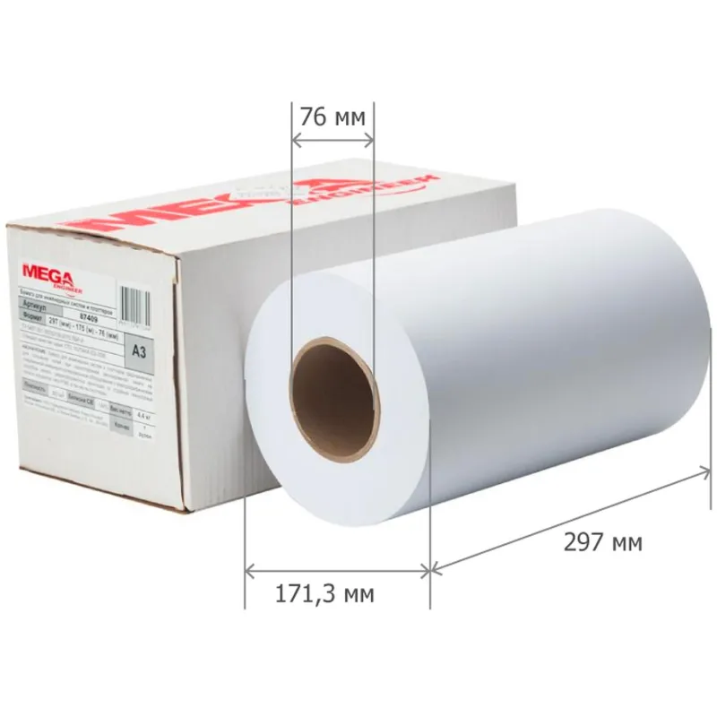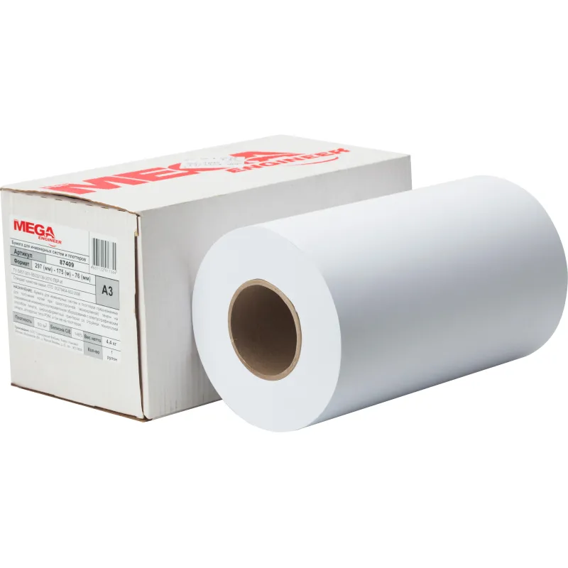 Широкоформатная бумага MEGA Engineer предназначена для печати на струйных монохромных плоттерах (широкоформатных принтерах) HP, Epson, Encad, Canon OCE и других. Может использоваться для цветных изображений c низким разрешением печати. Бумажное полотно шириной 297 мм с высоким показателем белизны (146%) имеет однородную поверхность. Оптимальная плотность, составляющая 80 г/кв.м, исключает просвечивание изображения. В упаковке поставляется 1 рулон с длиной намотки 175 м. Общий диаметр рулона 17,5 см.