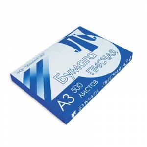 Офсетная писчая бумага формата А3, предназначенная для секретарских работ, письма, а также для изготовления печатной продукции на матричных принтерах, ризографах, малых печатных машинах, в пачке 500 листов. Плотность бумаги составляет 65 г/кв.м, белизна 132%.
