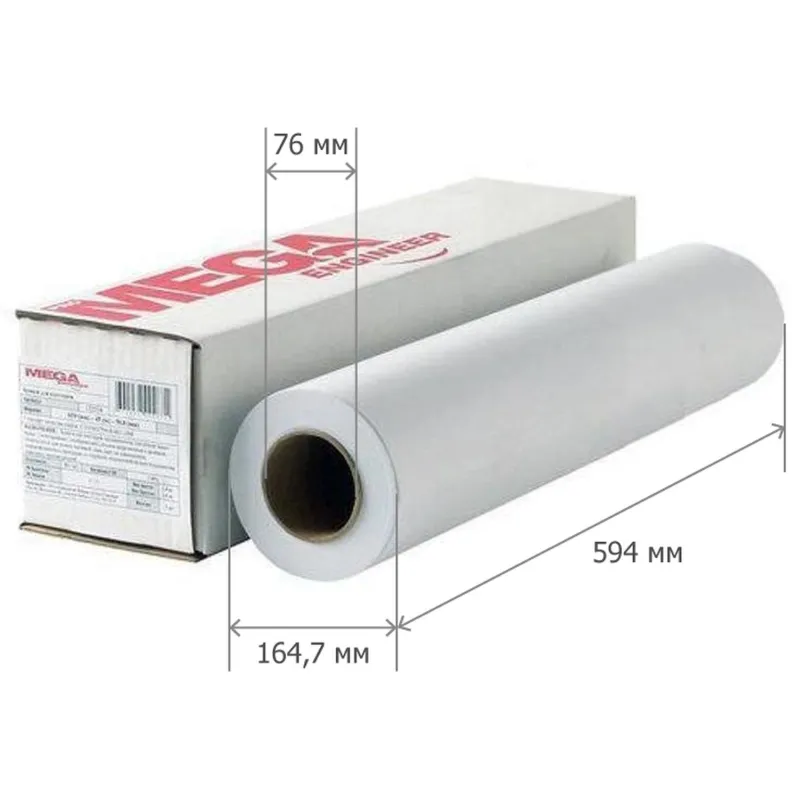 Широкоформатная бумага MEGA Engineer, предназначенная для печати технической документации, инженерной и деловой графики. Совместима со струйными черно-белыми плоттерами и принтерами НP, Сanon, Еpson, Xerox. Бумажное полотно высокой степени белизны имеет формат A1 (594 мм). Защитная полиэтиленовая пленка на упаковке сохраняет форму рулона и позволяет поддерживать нормальный уровень влажности. Длина рулона — 175 м.