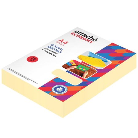 Бумага цветная Attache Economy (желтый пастель) предназначена для печати на всех видах принтеров. Одна пачка содержит 500 листов формата А4, плотность которых составляет 70 г/кв.м. Цветопередача монитора может искажать реальный цвет продукта.