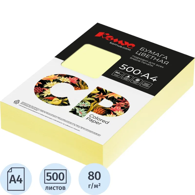 Бумага цветная «Комус» (желтый пастель) предназначена для печати на всех видах принтеров. Идеально подходит для печати, копий, а также имеет множество других применений. Одна пачка содержит 500 листов формата А4, плотность которых составляет 80 г/кв.м.Цветопередача монитора может искажать реальный цвет продукта.