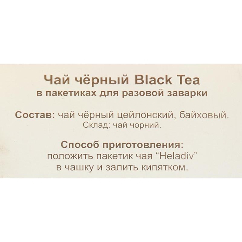 Heladiv Golden Ceylon черный — это прекрасный вариант для ежедневных чаепитий в утреннее и дневное время. Он обладает великолепным бодрящим эффектом, поднимает настроение, повышает концентрацию внимания и согревает изнутри. Черный чай неизменно хорош для сочетаний с молоком, лимоном, лаймом и другими традиционными ингредиентами. Яркий, тонизирующий напиток необходим как дома, так и в офисе, он помогает резвее справляться с важными и сложными задачами, а также является прекрасным угощением для гостей, партнеров и клиентов.