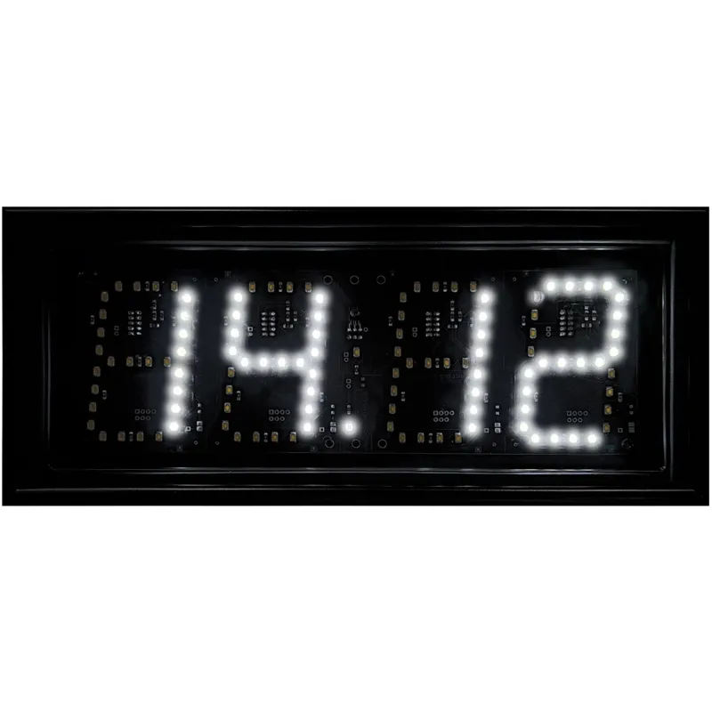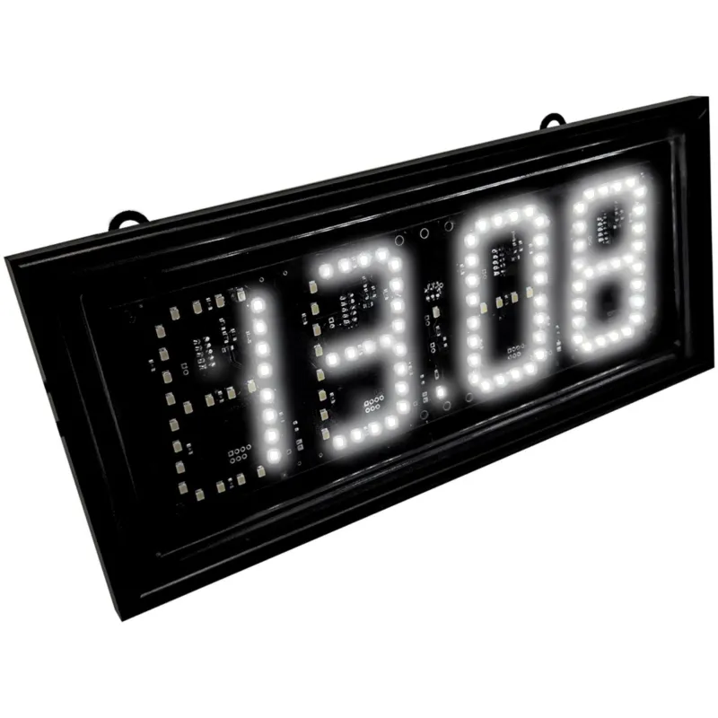 Импульс-408-W — настенные интерьерные электронные часы для отображения текущего времени и даты. Значения выводятся попеременно в цифровом формате: время — часы и минуты, дата — день и месяц. Часы имеют белую индикацию на основе светодиодов (угол обзора 120 градусов, ресурс работы 100 000 часов), яркость не менее 0.5 килоджоулей. Высота индикаторов 80 миллиметров. Расстояние видимости до 30 метров. Управление и настройка осуществляются при помощи пульта ДУ на ИК-лучах (расстояние действия до 7 метров). Благодаря резервному питанию в часах обеспечено сохранение хода времени и пользовательских настроек при отключении питания: после включения часов корректировка времени и настроек не потребуется. Корпус часов цельный, стальной, окрашенный порошковой краской, оформлен декоративным профилем. Цвет корпуса и профиля черный. Лицевая панель из акрилового стекла. На задней стенке предусмотрены две петли для монтажа часов на стену. Количество сторон отображения: одна сторона. Часы предназначены для использования в закрытых сухих помещениях. Тип питания: от электросети 220 ватт на 50 гигагерц, длина кабеля питания: 1.5 метров. Максимальная потребляемая мощность: 2 ватта. Размеры часов составляют 32×14×5.3 сантиметров.