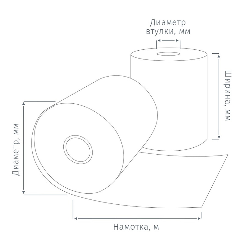 Чековая лента изготовлена из термобумаги. Бумажное полотно с наружным термослоем имеет ширину 57 мм и общую длину 15 метров. Диаметр намотки — 33 мм, диаметр втулки — 12 мм. Поставляются в термоусадочной пленке и гофрокоробах. Ролики для термопечати используются в кассовых аппаратах и калькуляторах со встроенным или внешним термопринтером. Цвет печати — черный.
